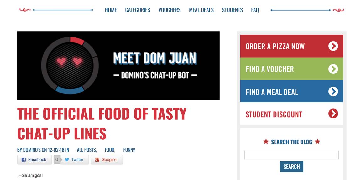 Enter the UK’s first ever branded Tinder chat bot; Dom Juan, the Pizza Casanova.